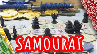 Samurai se déroule dans le Japon médiéval. Les joueurs rivalisent pour obtenir la faveur de trois factions, les samouraïs, les paysans et les prêtres, représentées respectivement par des casques, des rizières et des statues de Bouddha disposés sur le plateau figurant les îles du Japon. La confrontation se fait grâce à des tuiles hexagonales, chacune permettant de gagner de l’influence auprès de l’une des trois factions, ou parfois des trois à la fois. Les joueurs peuvent lancer des attaques rapides à l’aide de rōnin à cheval et de navires, ou progresser de manière plus méthodique. Lorsqu’une figurine est entièrement encerclée, elle est attribuée au joueur ayant accumulé le plus d’influence auprès du groupe correspondant.