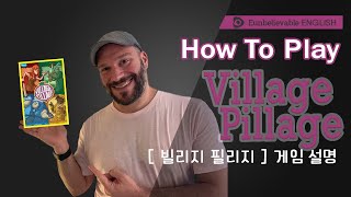 Village Pillage est un jeu de 2 à 5 joueurs, à partir de 10 ans, qui repose sur des actions simultanées sur tous les fronts. À chaque tour, les joueurs choisissent en même temps deux cartes de leur main et en jouent une contre chacun de leurs voisins. Toutes les cartes sont révélées en même temps, puis résolues dans l’ordre suivant : Fermiers, Murailles, Pillards, Marchands. Les Fermiers produisent des navets, les Murailles bloquent les Pillards, les Pillards volent des navets, et les Marchands permettent soit d’ajouter de nouvelles cartes à votre main, soit d’aider à l’achat d’une relique. Toutes les cartes retournent ensuite en main et un nouveau tour commence. La partie s’achève dès qu’un joueur possède trois reliques royales.